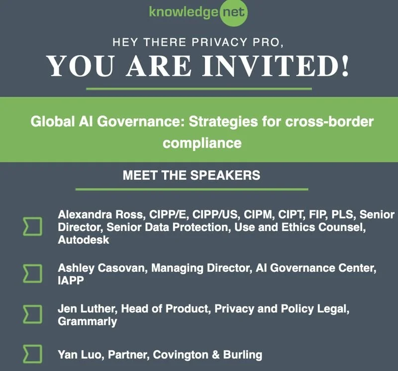In the news. #1 of 2025's Top Women Leaders in Technology AI Insights Podcast guest feature Privacy Pros Podcast guest feature International Association of Privacy Professionals AI Governance panel Sydney Innovation and Tech Fest business transformation panel Privacy + Security Forum global privacy panel